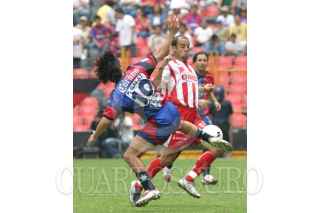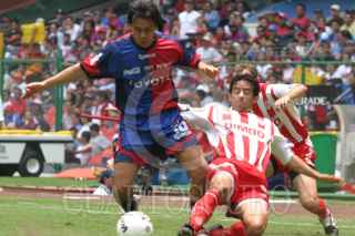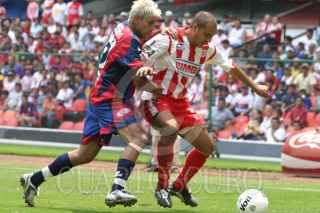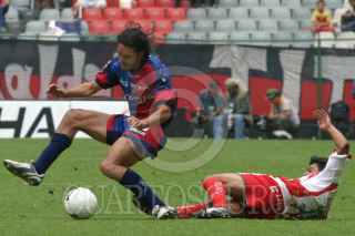 MEXICO, D.F. 01MAYO2005.- Sebastian González " chamagol" y Sebastian Galaz, festejan uno de los dos goles anotados durante el primer tiempo del partido de claudsura 2005, contra el Necaxa. Los Rayos Rojos quedaron triunfadores con tres goles. FOTO: Sandra Perdomo/CUARTOSCURO.COM