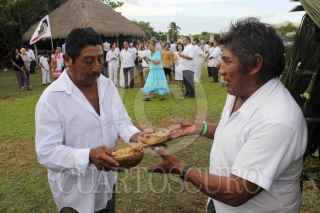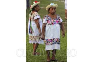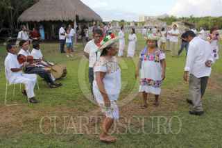 CANCUN, QUINTANA ROO, 21SEPTIEMBRE2012.- Matilde Chiquil Tun y Maria Pech Pech durante el Mensaje de Luz, Armonía y Paz al Mundo Cancún 2012, en el contexto del fin del Calendario Maya para un nuevo renacer, evento previo al día mundial de la paz en el sitio Arqueológico "el Rey" en la zona Hotelera de Cancún. FOTO: CSPHOTO /CUARTOSCURO.COM