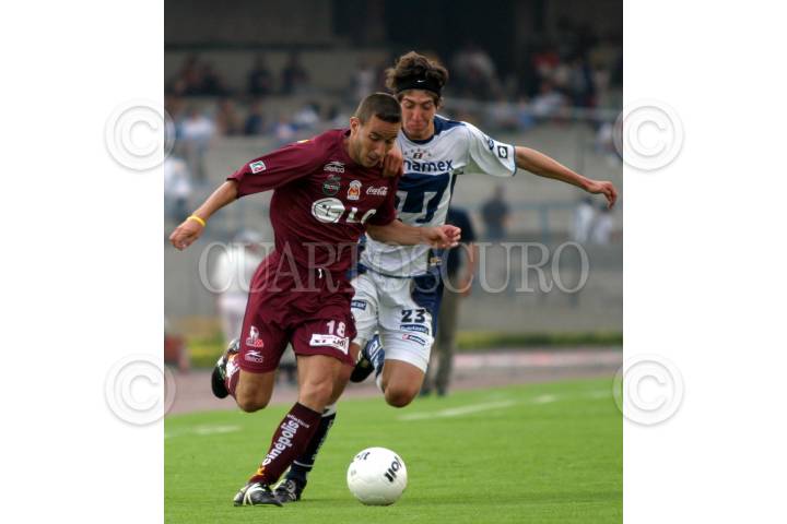 MEXICO, D.F. 01MAYO2005.- Los directores técnicos de los Monarcas del Morelia y el de los Pumasde la UNAM, Rubén Omar Romano y Hugo Sánchez, respectivamente, se saludan al inicio del encuentro de sus partidos. FOTO: Sandra Perdomo/CUARTOSCURO.COM