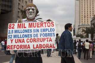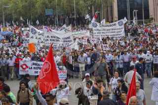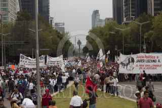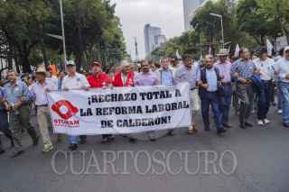 MÉXICO, D.F., 21SEPTIEMBRE2012.- Organizaciones sindicales y sociales como la Unión Nacional de Trabajadores, los sindicatos Mexicano de Electricistas, de Trabajadores de la Universidad Nacional Autónoma de México, de Sobrecargos de Aviación de México, la Alianza de Tranviarios y la Asociación Sindical de Pilotos Aviadores de México, realizaron una marcha partiendo del Angel de la independencia, con destino al Zócalo Capitalino, esto como protesta a la Reforma Laboral promovida por el presidende de la República, Felipe Calderón Hinojosa, pues según plantean viola el artículo 123 de la Constitución. FOTO: PEDRO ANZA /CUARTOSCURO.COM
