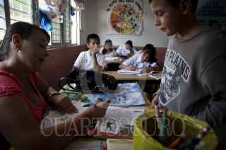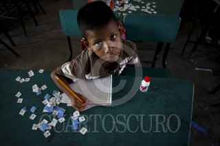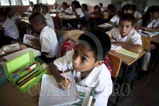 CULIACAN, SINALOA 21SEPTIEMBRE2012.- Después de varias semanas sin clases debido a la falta de maestros en la escuela para hijos de migrantes henry ford 24, ubicada en la sindicatura de Costa Rica, decenas de niños regresan a seguir con sus estudios apesar de las carencias como son la falta de abanicos y aire acondicionado, en ocasiones las lluvias provocan que las clases sean suspendidas por las inundaciones. FOTO: RASHIDE FRÍAS /CUARTOSCURO.COM