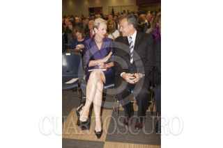 MÉXICO, D.F., 21SEPTIEMBRE2012.- Judith McGregor, embajadora de Gran Bretaña en México, charla con el colombiano Oscar Naranjo, durante el Foro Global de Ciudadanía, organizado por el Tec de Monterrey, en el campus Santa Fé de esa escuela. FOTO: JUAN PABLO ZAMORA /CUARTOSCURO.COM