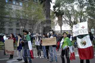 BUENOS AIRES, ARGENTINA, 21SEPTIEMBRE2012.- Decenas de mexicanos simpatizantes del movimiento #Yosoy132 y ciudadanos argentinos protestaron en la Plaza de Mayo, frente a la Casa Rosada, por la visita del presidente electo de México, Enrique Peña Nieto , el cual sostuvo una reunión con la presidenta Cristina Fernández de Kirchner. FOTO: CORTESÍA CQUEER /CUARTOSCURO.COM