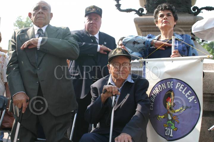 MEXICO, D.F. 02MAYO2005.- Escolta de Honor, integrada por algunos de los sobrevivientes del Escuadron 201, la cual marcho hacia el zòcalo al tèrmino de la ceremonia del LX aniversario de la defensa de la soberania nacional por Escuadron 201. FOTO: Sandra Perdomo/CUARTOSCURO.COM