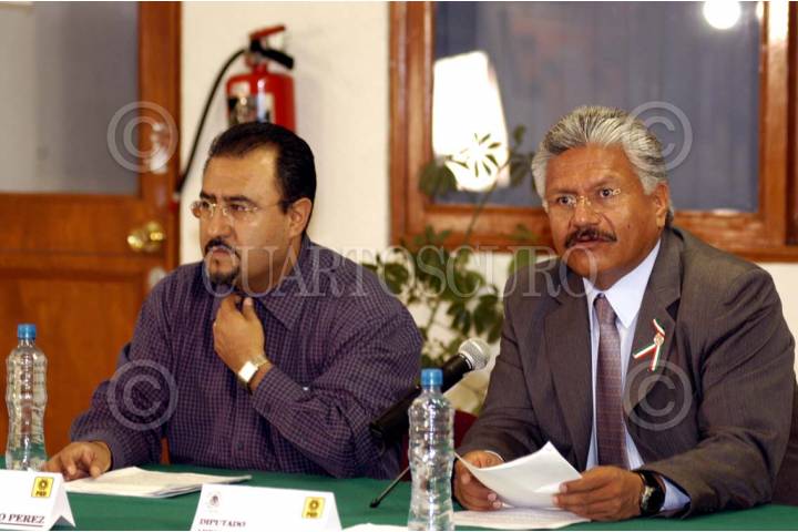 MEXICO, D.F. 02MAYO2005.- Los diputados del Partido de la Revolución Democrática, Adrián Pedrozo Castillo y Pablo Trejo Pérez, en conferencia de prensa, explicaron los detalles de la Iniciativa de Reformas a la Ley de Obras Públicas, del Distrito Federal con las que se busca mejorar el combate a la corrupción. FOTO: CUARTOSCURO.COM