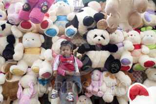 MÉXICO, D.F., 26SEPTIEMBRE2012.- Un pequeño acompaña a su madre en el puesto en donde vende muñecos de peluche para regalo, la imagen fue captada sobre Fray Servando Teresa de Mier, avenida por la cual paso una marcha que se opone a la Reforma Laboral, misma que dicen los trabajadores atenta contra sus derechos. FOTO: MOISÉS PABLO /CUARTOSCURO.COM
