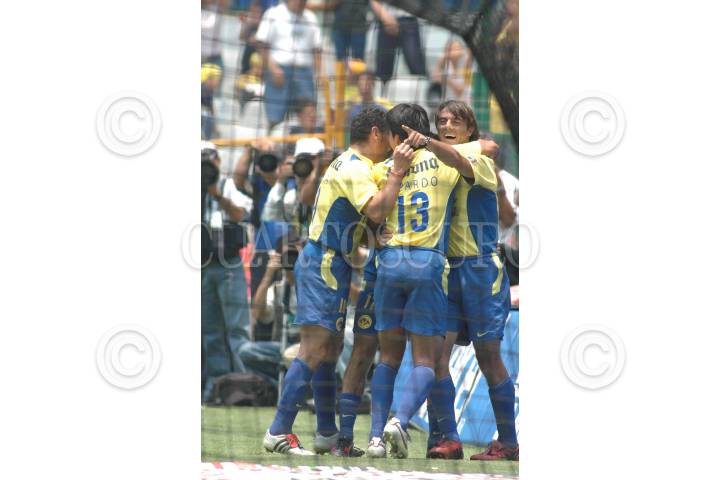 MEXICO, D. F. 08MAYO2005.- Cuauhtemoc Blanco festeja su tercer anotación en el partido disputado contra Atlas donde las Águilas del América se impusieron 5 goles a 2 a los rojinegros del Atlas en el partido de la jornada 17 del torneo de clausura 2005. FOTO: Iván Stephens/CUARTOSCURO.COM