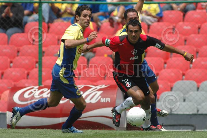 MEXICO, D. F. 08MAYO2005.- Cuauhtemoc Blanco festeja su tercer anotación en el partido disputado contra Atlas donde las Águilas del América se impusieron 5 goles a 2 a los rojinegros del Atlas en el partido de la jornada 17 del torneo de clausura 2005. FOTO: Iván Stephens/CUARTOSCURO.COM