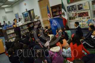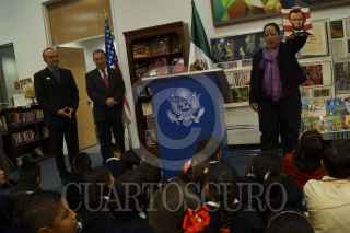 MÉXICO, D.F., 27SEPTIEMBRE2012.- En la biblioteca Benjamin Franklin, el embajador de Estados Unidos en México, Anthony Waynef, recibió de parte de la empresa Walt Disney México una donación de libros para niños. Wayne dió una charla con los infantes acerca de los personajes de Disney, esto para fomentar la lectura. FOTO: PEDRO ANZA /CUARTOSCURO.COM