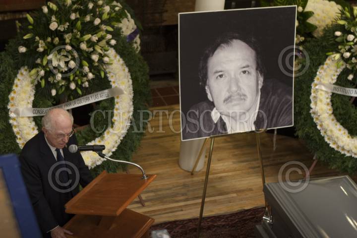 MÉXICO, D.F., 27SEPTIEMBRE2012.-El director de la Academia Mexicana de la Lengua, Jaime Labastida, Gonzalo Celorio familiare, hacen una guardia en la capilla Alfonsina en el homenaje de cuerpo presente que le realizaron al poeta, Miguel Capistrano, quien falleció el martes pasado y que estaba a punto de ingresar a la Academia como uno más de sus miembros, debido a esto el propio Labastida entrego la medalla y diploma a sus deudos. FOTO: FRANCISCO RODRÍGUEZ /CUARTOSCURO.COM