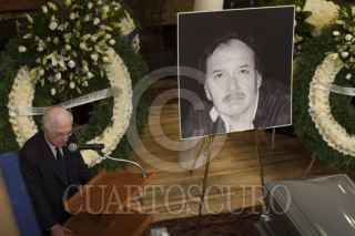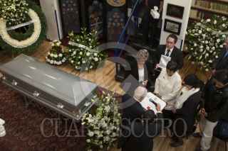 MÉXICO, D.F., 27SEPTIEMBRE2012.-El director de la Academia Mexicana de la Lengua, Jaime Labastida, Gonzalo Celorio familiare, hacen una guardia en la capilla Alfonsina en el homenaje de cuerpo presente que le realizaron al poeta, Miguel Capistrano, quien falleció el martes pasado y que estaba a punto de ingresar a la Academia como uno más de sus miembros, debido a esto el propio Labastida entrego la medalla y diploma a sus deudos. FOTO: FRANCISCO RODRÍGUEZ /CUARTOSCURO.COM
