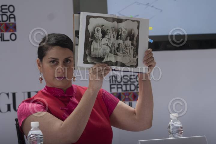 MÉXICO, D.F., 27SEPTIEMBRE2012.- La investigadora plástica y curadora de la exposición, Circe Henestrosa, presentó en conferencia de prensa en La Casa Azul Museo Frida Kahlo, en colaboración con la revista Vogue México y el grupo educativo Angloamericano, la exhibición titulada "Las apariencias engañan: los vestidos de Frida", donde mezclan historia y actualidad a través del guardarropa de la famosa pintora. FOTO: FRANCISCO RODRÍGUEZ /CUARTOSCURO.COM