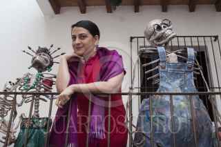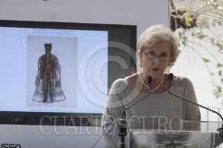 MÉXICO, D.F., 27SEPTIEMBRE2012.- La investigadora plástica y curadora de la exposición, Circe Henestrosa, presentó en conferencia de prensa en La Casa Azul Museo Frida Kahlo, en colaboración con la revista Vogue México y el grupo educativo Angloamericano, la exhibición titulada "Las apariencias engañan: los vestidos de Frida", donde mezclan historia y actualidad a través del guardarropa de la famosa pintora. FOTO: FRANCISCO RODRÍGUEZ /CUARTOSCURO.COM