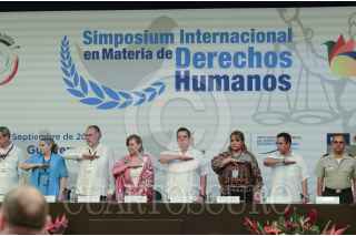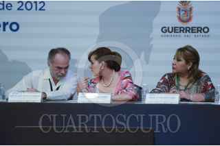 ACAPULCO, GUERRERO., 27SEPTIEMBRE2012.- Ángel Aguirre Rivero, gobernador de esta entidad, Marisela Morales Ibáñez procuradora General de la Republica y presidenta de la Conferencia Nacional de Procuración de Justicia, Martha Elva Garzón Bernal, Procuradora del estado y José de Jesús Orozco Henríquez, Presidente de la Comisión Interamericana de Derechos Humanos encabezo la ceremonia de inauguración del Simposium Internacional en Materia de Derechos Humanos. FOTO: BERNANDINO HERNÁNDEZ /CUARTOSCURO.COM