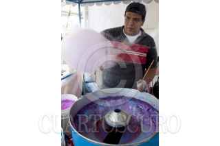 MÉXICO, D.F., 28SEPTIEMBRE2012.- Un comerciante prepara algodones de azúcar en el Zócalo capitalino en donde se inauguró la 4ta Feria de la Transparencia. FOTO: MOISÉS PABLO /CUARTOSCURO.COM