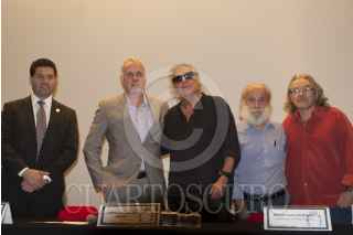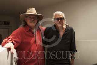MÉXICO, D.F., 27SEPTIEMBRE2012.- El director de Cine, Gustavo Dominguez y el artista plástico, Alejandro Colunga, presentaron en conferencia de prensa "Fogonero del Delirio, Alejandro Colunga" documental del artista plástico, mostrando el trabajo cotidiano conjugado con música y una animación sumada que da un largometraje digno de verse. La cinta se presentará en el cine Lide el día de hoy a las 20 hrs y mañana en el centro cultural España a las 17 hrs en la programación habitual de sedes alternas de la Cineteca Nacional. FOTO: FRANCISCO RODRÍGUEZ /CUARTOSCURO.COM