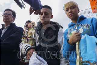 MÉXICO, D.F., 28SEPTIEMBRE2012.- Como cada 28 de mes, miles de fieles religiosos se dieron cita en el templo de San Hipólito, para asistir a la misa del santo "San Judas Tadeo". El culto a San Juditas se distingue de otros, sobre todo en que la mayoría de sus fieles son jovenes. FOTO: PEDRO ANZA /CUARTOSCURO.COM