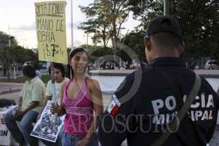 CANCUN, QUINTANA ROO, 28SEPTIEMBRE2012.- Trabajadores del SNTE e integrantes del 132 se manifestaron en contra de la reforma laboral en la Plaza de la Reforma. FOTO: CSPHOTO /CUARTOSCURO.COM