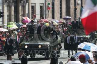 MORELIA, MICHOACÁN 30SEPTIEMBRE DE 2012.- Felipe Calderón y su esposa Margarita Zavala, asistieron al desfile para conmemorar el 247 aniversario del natalicio de José María Morelos y Pavón, fué acompañado por el gobernador de la entidad, Fausto Vallejo, los secretarios de Marina y Defensa Francisco Sainez y Guillermo Galván. FOTO: JUAN PABLO ZAMORA /CUARTOSCURO.COM