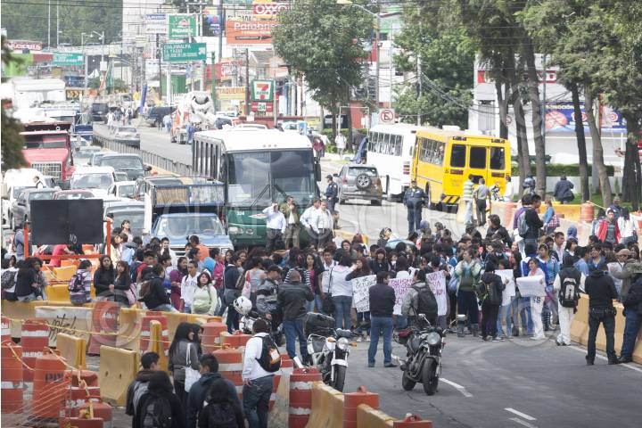 MÉXICO, D.F., 02OCTUBRE2012.- Estudiantes del Colegio de Bachilleres 8, ubicado en el Molinito, Delegación Cuajimalpa, bloquearon ambos sentidos de la carretera México-Toluca, en ambos sentidos durante más de tres horas. Los escolapios protestaban por la reciente aprobación de la Reforma Laboral que los deja como mano de obra barata, además conmemoraron el 44 aniversario de la matanza de estudiantes del 68 en la Plaza de las Tres Culturas en Tlatelolco. FOTO: FRANCISCO RODRÍGUEZ /CUARTOSCURO.COM