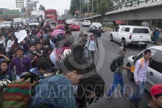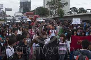 MÉXICO, D.F., 02OCTUBRE2012.- Estudiantes del Colegio de Bachilleres 8, ubicado en el Molinito, Delegación Cuajimalpa, bloquearon ambos sentidos de la carretera México-Toluca, en ambos sentidos durante más de tres horas. Los escolapios protestaban por la reciente aprobación de la Reforma Laboral que los deja como mano de obra barata, además conmemoraron el 44 aniversario de la matanza de estudiantes del 68 en la Plaza de las Tres Culturas en Tlatelolco. FOTO: FRANCISCO RODRÍGUEZ /CUARTOSCURO.COM