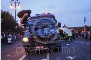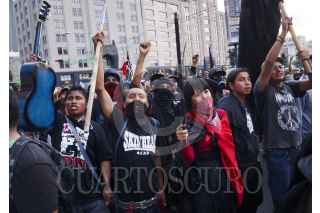 MÉXICO, D.F., 02OCTUBRE2012.- Jóvenes, organizaciones sociales y personas en lo individual agrupados en la UACM, IPN, UNAM, grupos Anarcopunks, etc; participaron en la marcha conmemorativa del 02 de octubre que se realizó desde la Plaza de las Tres Cultura en Tlatelolco al Zócalo capitalino. FOTO: PEDRO ANZA /CUARTOSCURO.COM