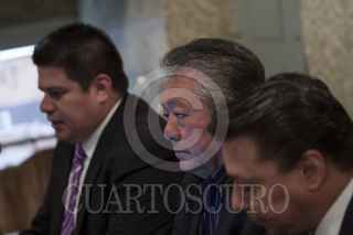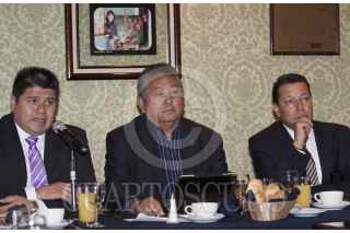 MÉXICO, D.F., 03OCTUBRE2012.- Carlos Ramayo, de la Confederación de Porcicultores Mexicanos, acompañado de Alejandro Ramírez, de la organización de porcicultores mexicanos y Manuel Gascon durante la presentación del XI Encuentro Nacional de Porcicultura 2012 que se realizará del 10 al 13 de octubre en Cancún. FOTO: RODOLFO ANGULO /CUARTOSCURO.COM