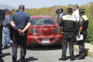 NEZAHUALCOYOTL, ESTADO DE MÉXICO, 03OCTUBRE2012.- Cuatro cuerpos embolsados fueron hallados en la cajuela de un auto Mazda de color rojo placas MLX-7288, el cual se encontró estacionado en los carriles laterales de Periférico a la altura de la avenida Central en la colonia Valle de Aragón. FOTO: LUIS CARBAYO /CUARTOSCURO.COM