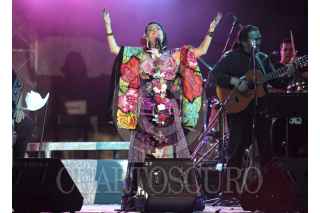 SALTILLO, COAHUILA, 04OCTUBRE2012.- En el marco del Festival Internacional de las Artes, se presentó la interprete oaxaqueña, Lila Downs en la Plaza de Armas de la capital para deleitar a los saltillenses con su música tradicional y el estilo que la caracteriza. FOTO: KARLA ITZEL RUIZ /CUARTOSCURO.COM