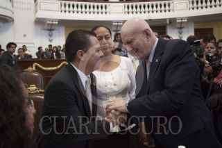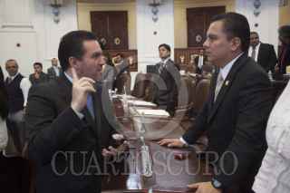 MÉXICO, D.F., 04OCTUBRE2012.- Los coordinadores Federico Döring, PAN, conversa con Manuel Granados, PRD, en la sesión de la Asamblea Legislativa del DF. FOTO: MOISÉS PABLO /CUARTOSCURO.COM