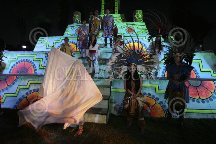MÉXICO, D.F., 04OCTUBRE2012.- Sobre la isla Tlilac en Xochimilco se dio a conocer la temporada XIX de “La Llorona. Los presagios para el fin de una era”, dirigida por el maestro René Rea. El espectáculo recoge una de las leyendas mexicanas de mayor arraigo entre la población nacional de todos los tiempos, iniciará temporada formal mañana, 5 de octubre, misma que se prolongará hasta el próximo 18 de noviembre. En ese lapso, la representación escénica dejará sin aliento a unas 30 mil personas. Anoche, durante la función que la compañía teatral Mez-me ofreció a familiares y amigos, así como a las autoridades políticas y tradicionales, el elenco completo y el cuerpo técnico pidieron, con una rodilla en el piso, permiso al antiguo gran dios Hutzilopochtli y al Niño Pa, prueba del sincretismo que generó la Conquista. FOTO: IVÁN MENDEZ /CUARTOSCURO.COM