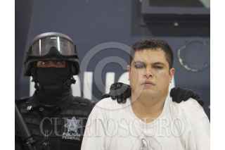 MÉXICO, D.F., 04OCTUBRE2012.- Personal de la Policía Federal, presentaron ante los medios de comunicación a Jesús Valentin Nuñez, presunto sucesor del líder del grupo criminal La Linea y a Christian Enrique Lara alias el 18, presunto colaborador de la organizacion delictiva Los caballeros Templarios. FOTO: SAÚL LÓPEZ /CUARTOSCURO.COM