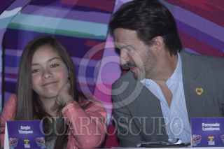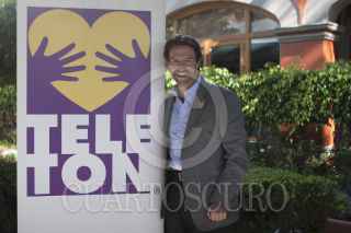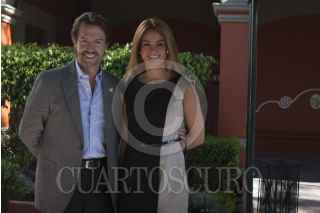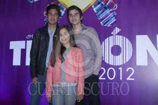 MÉXICO, D.F., 05OCTUBRE2012.-Angie Vázquez, vocalista de "Los Vazquez Sound" y Fernando Landeros, director general de la Fundación Teletón, presentaron a los medios de comunicación la mañana de hoy el himno del Teletón llamado "Gracias a ti" interpretado por la agrupación pop, con lo que se celebra así 15 años del nacimiento de la fundación Teletón. FOTO: FRANCISCO RODRÍGUEZ /CUARTOSCURO.COM