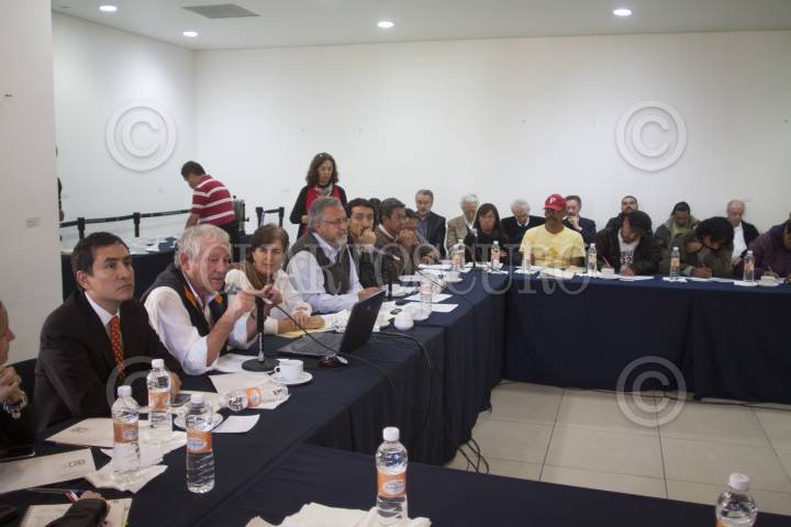 MÉXICO, D.F., 05OCTUBRE2012.- Integrantes del Consejo Estudiantil de Lucha dialogan en un receso de la mesa de diálogo que se estableció para resolver el conflicto estudiantil en la Universidad Autónoma de la Ciudad de México. La mesa esta compuesta por un grupo de observadores, estudiantes del CEL y autoridades de la UACM, encabezados por Jesús Fandiño Armas. FOTO: MOISÉS PABLO /CUARTOSCURO.COM