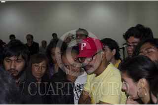 MÉXICO, D.F., 05OCTUBRE2012.- Integrantes del Consejo Estudiantil de Lucha dialogan durante un receso de la mesa de diálogo que se establecio para destrabar el conflicto estudiantil que vive la Universidad Autónoma de la Ciudad de México. En esta mesa también participan obervadores y autoridades de la UACM, encabezados por Jesús Fandiño, secretario general de esta universidad. A casi dos meses de huelga este conflicto no se ha resuelto y fue ocasioado por el rechazo a la integración del Tecer Consejo Universitario, en donde los huelgistas impugnan la elección de 8 consejeros afines a la rectora María Esther Orozco, quien por cierto no acudió a la cita en Casa Lamm. FOTO: SANDRA PÉREZ /CUARTOSCURO.COM