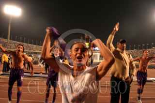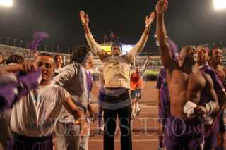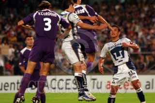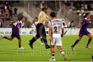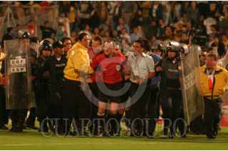 MEXICO, D.F., 11MAYO2005.- Granaderos protejen al árbitro en el partido de Pumas contra Saprissa. FOTO: Moisés Pablo/CUARTOSCURO.COM