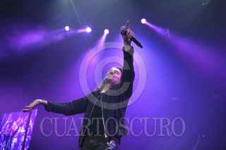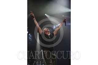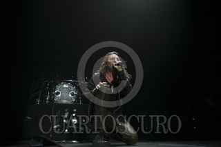 MÉXICO, D.F., 06OCTUBRE2012.- La agrupación musical Mana integrada por Fher (Voz), Alex (Batería), Juan (Bajo) y Sergio (Guitarra), iniciaron su recital el día de ayer interpretando "Oye mi amor", tema que cimbró el Palacio de los Deportes, concierto que significa el regreso de esta banda jalisciense a territorio capitalino. FOTO: SARA ORTÍZ /CUARTOSCURO.COM