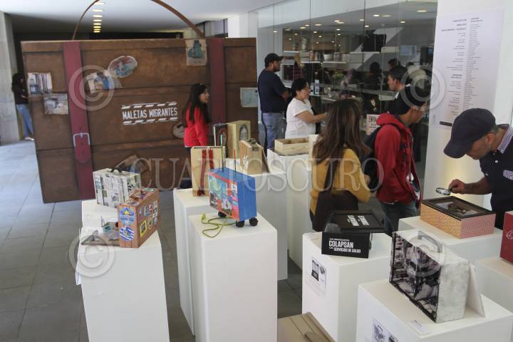 MÉXICO, D.F., 07OCTUBRE2012.- Decenas de personas asisten a la exposición “Maletas migrantes” y al ciclo de cine “Ideas migratorias y estrategias documentales” que se exhibe en el Museo Memoria y Tolerancia; dicha exposición es un proyecto compuesto de 50 maletas intervenidas por 50 artistas plásticos contemporáneos, con el objetivo de generar una reflexión en torno a la diversidad de los procesos migratorios, la exposición se mantendrá abierta hasta 21 de octubre. FOTO: GUILLERMO PEREA /CUARTOSCURO.COM