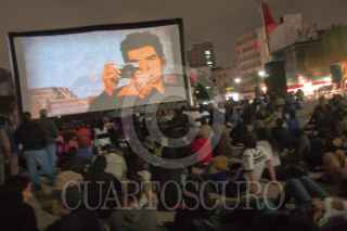 MÉXICO, D.F. 07OCTUBRE2012.- El documental "La huella del Dr. Ernesto Guevara" (2012) , Jorge Denti, fué presentado en la Plaza de la República. Cobijado por el Monumento a la Revolución, el documental muestra la faceta como médico de Ernesto Guevara, sus aportes a la alergología, así como el segundo recorrido que realizó en su juventud por América Latina. El cineasta argentino radicado en México desde hace 30 años, destacó que esta plaza en donde se proyectó el documental, transcurrieron hechos históricos importantes, "es en esta colonia Ernesto conoce a Raúl y Fidel Castro". FOTO: JUAN PABLO ZAMORA /CUARTOSCURO.COM