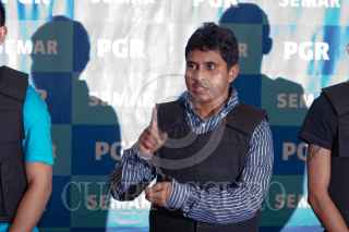 MÉXICO, D.F. 08OCTUBRE2012.- Salvador Martínez Escobedo o Carlos García, alias "La Ardilla", presentado por la Secretaría de Marina Armada de México (SEMAR). Presunto asesino de 72 migrantes. FOTO: JUAN PABLO ZAMORA /CUARTOSCURO.COM