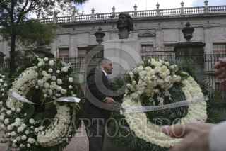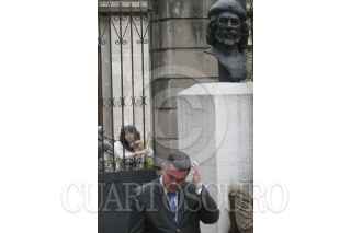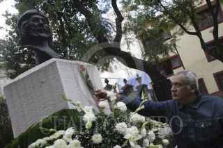 MÉXICO, D.F., 08OCTUBRE2012.- Integrantes de la embajada de Cuba y personal de la delegación Cuahutemoc, llevaron acabo una ofrenda floral en memoria de Ernesto Guevara de la Serna conocido como el "Che" que cumplió 45 años de su muerte. FOTO: JUAN PABLO ZAMORA /CUARTOSCURO.COM