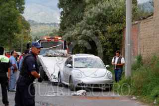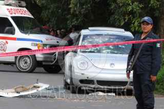 TLALMANALCO, ESTADO DE MÉXICO, 08OCTUBRE2012.- Una pareja perdió la vida luego de que varios sujetos con armas largas dispararan en contra de ellos abordo de su vehiculo beatle 181 VGY sobre la calle Vargas en la colonia Tlalmanalco Centro. FOTO: LUIS CARABAYO /CUARTOSCURO.COM