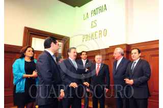 MÉXICO D.F., 08OCTUBRE2012.- El Ministro Juan N. Silva Meza, presidente de la Suprema Corte de Justicia de la Nación, recibió hoy a los integrantes de la junta de coordinación política del senado de la república. Durante el encuentro acompañaron al presidente del alto tribunal constitucional los ministros Arturo Zaldívar Lelo de Larrea y Luis María Aguilar Morales. FOTO: CUARTOSCURO.COM