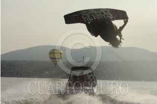 TEQUESQUITENGO, MORELOS, 09OCTUBRE2012.-Ayer se llevó a cabo el Día de los medios de comunicación de la Laguna de Tequesquitengo, en donde se realizó una magna exposición de todos los atractivos turísticos que ofrece esta comunidad. Sobresalió la participación de Jorge Gari Zurieta campeón de wakeboard en los juegos panamericanos en este año, así como los vuelos en globo y aviones ultraligeros. FOTO: ALMA LAFAYET /CUARTOSCURO.COM