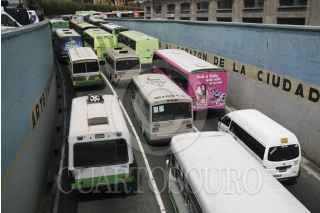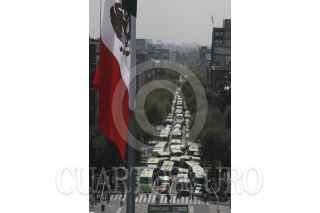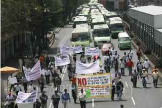 MÉXICO, D.F., 09OCTUBRE2012.- Transportistas de diversas rutas del Distrito Federal realizaron una marcha sobre Tlalpan para protestar en contra de la entrada de autobuses del Estado de México al Centro de Transferencia Modal que se abrirá en la estación Tláhuac de la Línea 12. Desde temprana hora chóferes inconformes salieron de diferentes puntos del DF para concentrarse en Tlalpan, a la altura del Metro General Anaya, donde partieron rumbo al Zócalo de la Ciudad de México. FOTO: IVÁN MENDEZ /CUARTOSCURO.COM