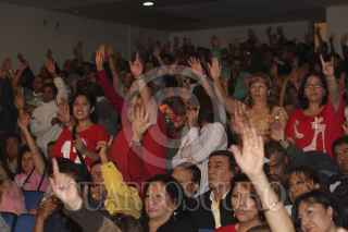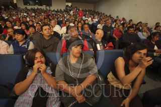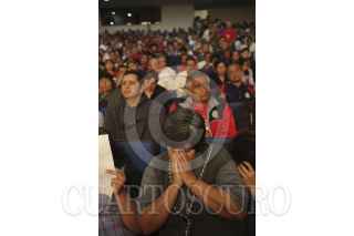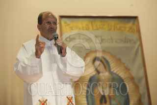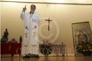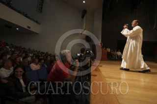MÉXICO, D.F., 09OCTUBRE2012.-El Padre Alejandro Solalinde ofició una misa en el Auditorio del Sindicato Mexicano de electricistas, antes de que partieran a una marcha a las oficinas de Gobernación. FOTO: JUAN PABLO ZAMORA /CUARTOSCURO.COM