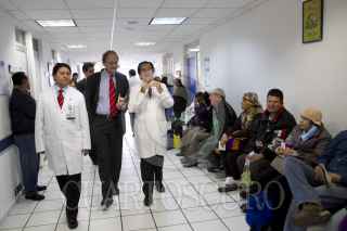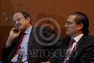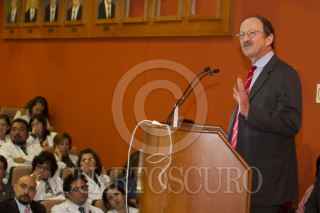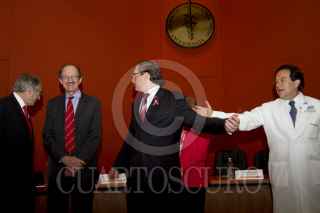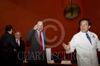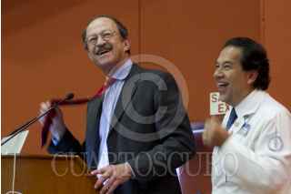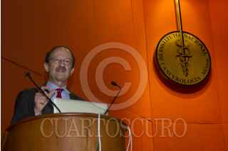 MÉXICO, D.F., 10OCTUBRE2012.- Harold Varmus, Premio Nobel de Medicina 1989, acompañado de Salomón Chertorivski, titular de la Secretaria de Salud y Alejandro Mohar, Director del Instituto Nacional de Cancerología, ofreció una conferencia magistral, en el auditorio del instituto, al termino fue acompañado por el director a un recorrido por los pasillos de está centro. FOTO: GUILLERMO PEREA /CUARTOSCURO.COM