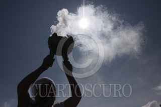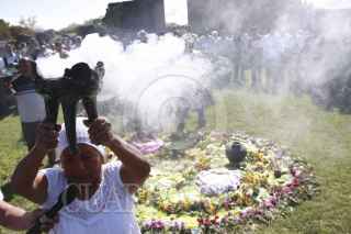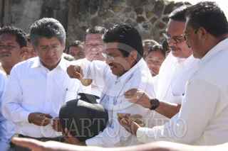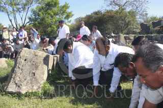 OAXACA, OAXACA, 10OCTUBRE2012.-Este miércoles dio inicio el Foro de Consulta Estatal sobre Derechos de los Pueblos Índígenas y Afroamericanos de Oaxaca, dicho evento se realiza en la zona arqueológica de Monte Alaban y es encabezado por el secretario de Asuntos Indígenas, Adelfo Regino Montes. El foro dio inicio con un ritual de purificación zapoteca.3 FOTO: ARTURO PEREZ ALFONSO /CUARTOSCURO.COM