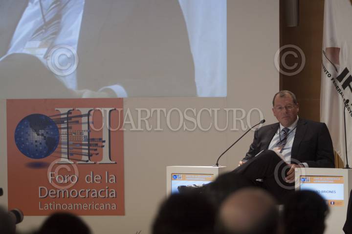 MÉXICO, D.F., 12OCTUBRE2012.- Omar Fayad, presidente de la Comisión de Seguridad Pública del Senado, y Miguel Ángel Mancera, Jefe de Gobierno electo, durante su participación en la mesa "narcotráfico, violencia y política: ¿cuáles son las estrategias concretas para enfrentar el poder del crimen organizado?, que se realizó en el Colegio de México, en el marco del III Foro de la Democracia Latinoamericana. FOTO: MOISÉS PABLO /CUARTOSCURO.COM