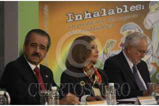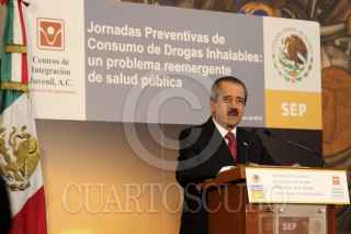 MÉXICO, D.F., 12OCTUBRE2012.- José Ángel Cordova Villalobos Secretario de Educación Pública, en compañia del Lic. Javier Moctezuma Barrragan, y el Doc. Jesús Kumate Rodríguez, entre otros realizó la inauguración de las Jornadas Preventivas del Consumo de Drogas Inhalables en las preparatorias, el evento se llevo acabo el el salón Hispanoamericano de la SEP. FOTO:ADRIANA ALVAREZ/CUARTOSCURO.COM
